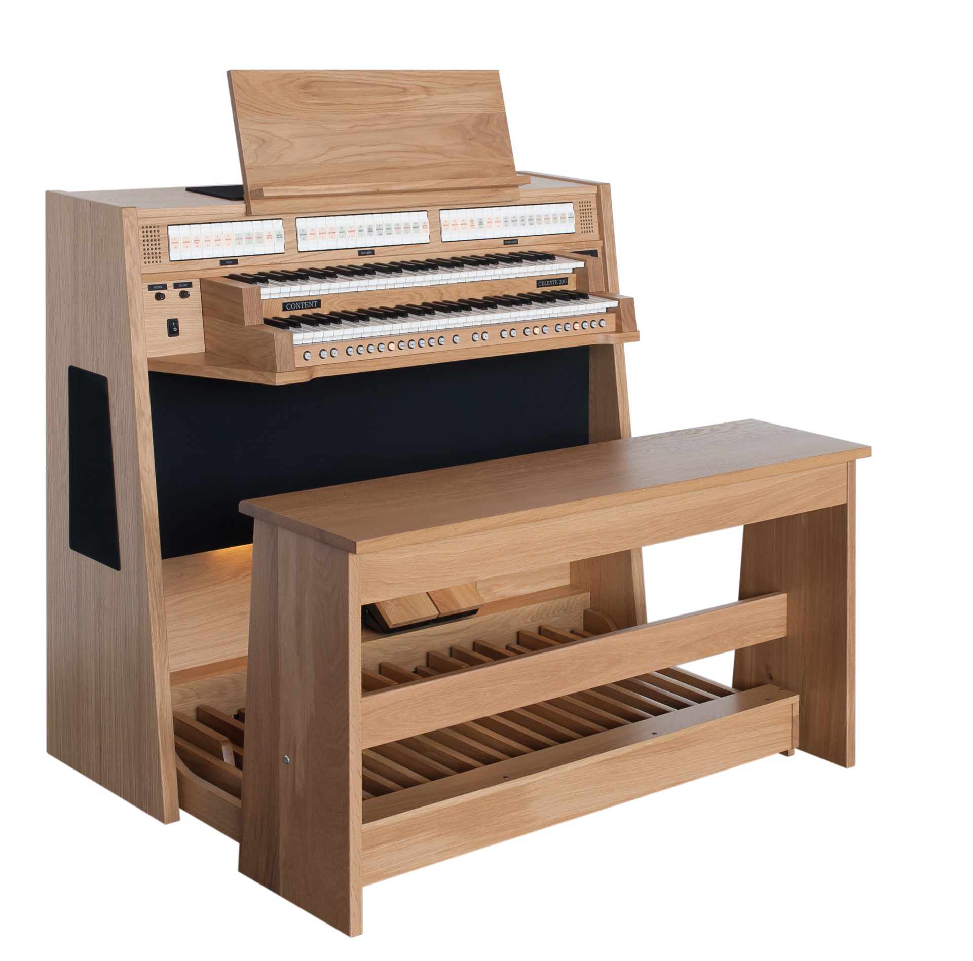 Maar liefst vier unieke klankstijlen zorgen ervoor dat u zich blijft verbazen over de mogelijkheden om de mooiste orgelwerken optimaal te laten klinken in één orgel, de Celeste 236. Met de Virtual Player Position kunt u het geluid ervaren hoe het klinkt achter de speeltafel, in de kerk voor het front of verderop in de kerk. Dit slechts met een simpele druk op de knop. Het orgel wordt gebouwd in een mooi robuust eigentijds design meubel.