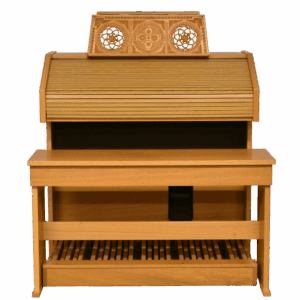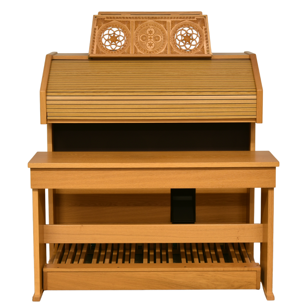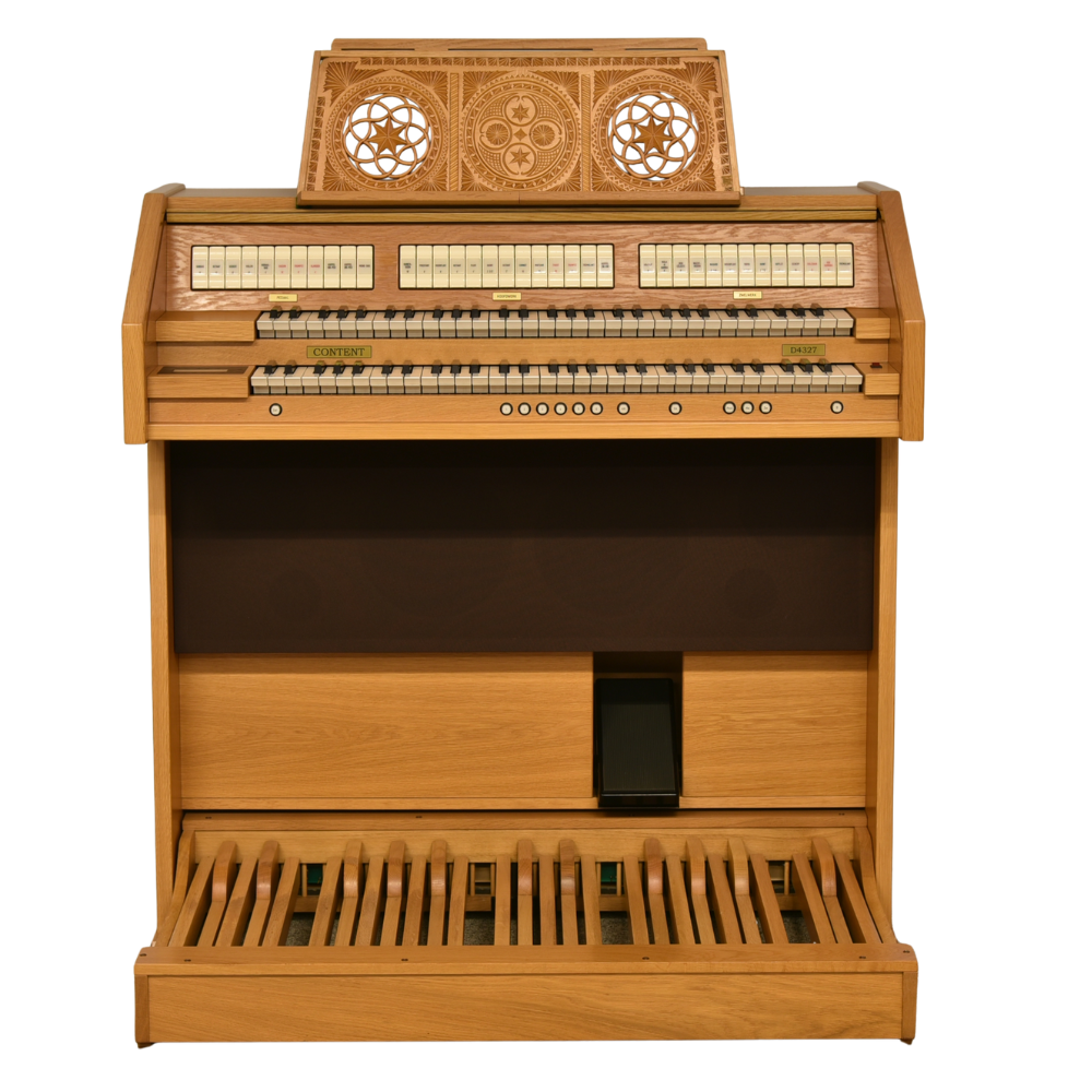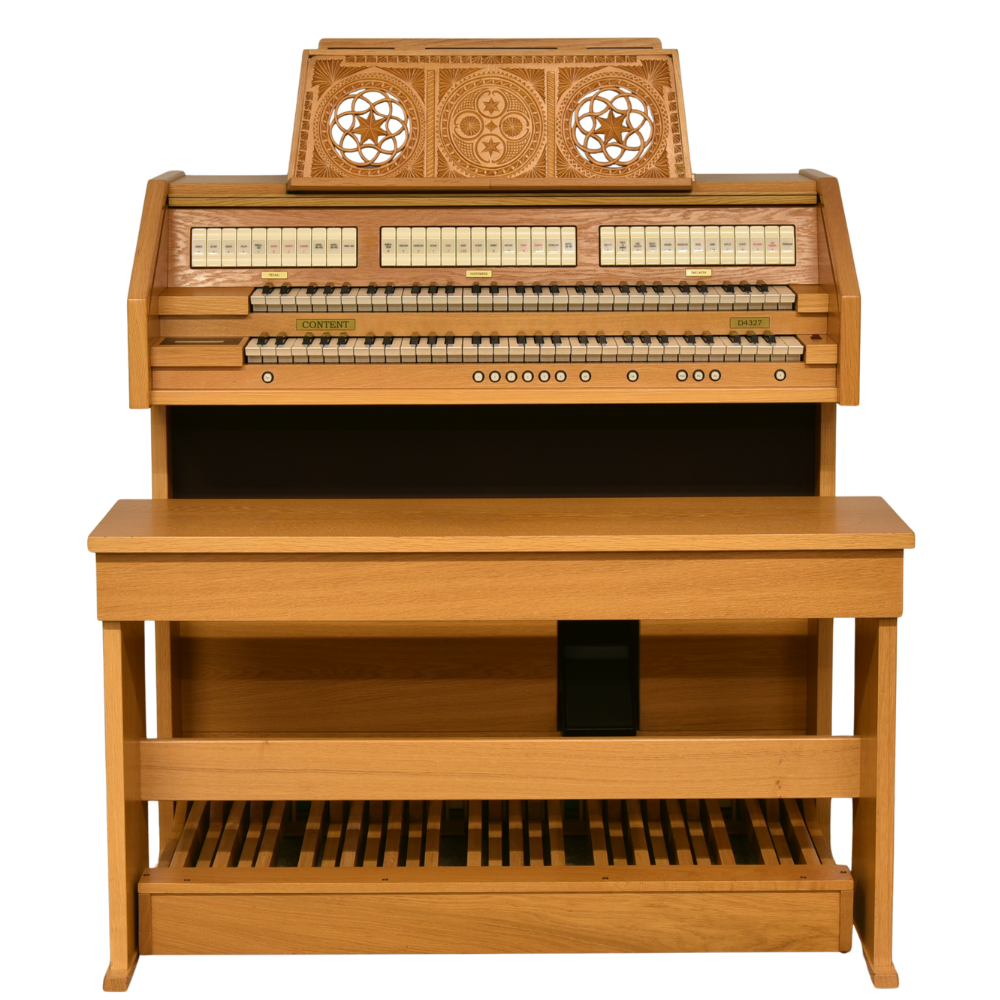 De Content D 4327 is een compact klassiek orgel, uitgevoerd in een klassieke kast, met roldeksel en inschuifbaar pedaal. Het orgel heeft een mooie unieke houten lessenaar!