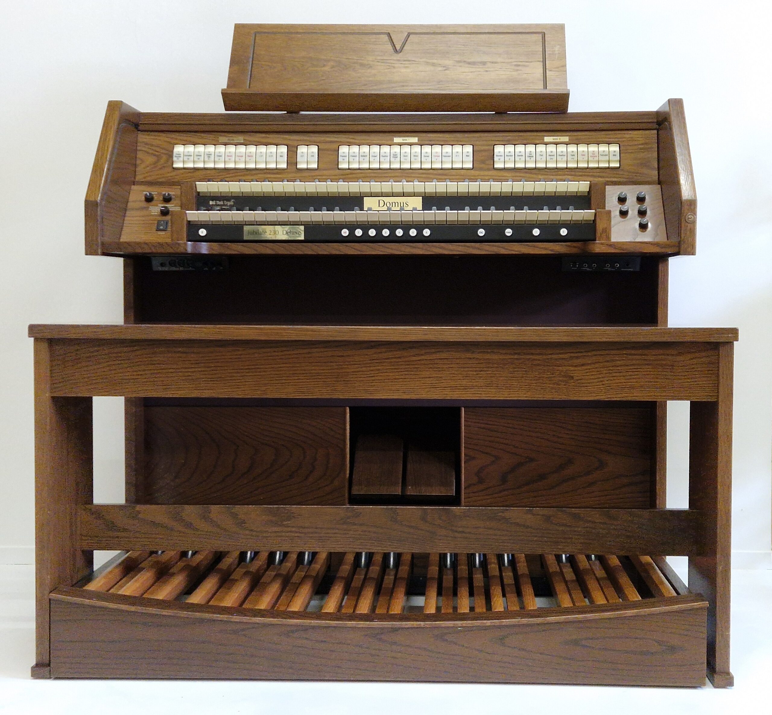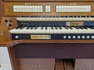 Zoekt u een mooi compleet digitaal klassiek orgel? Dan is deze goed onderhouden Domus Jubilate 230 een orgel voor u. Dit instrument, uitgevoerd in donker eiken; beschikt over 30-tonig concaaf pedaal. Met een 28-stemmige dispositie te bespelen in de klankstijl romantisch, volledig te personaliseren; kortom: een brede variëteit in klankmogelijkheden. Het orgel heeft zelfs een mooie orkestrale stem op het Hoofdwerk/onderklavier, de Chimes of het “Klokkenspel”, een erg mooi geïntoneerde en toepasselijke optie om eens mee te leren spelen.