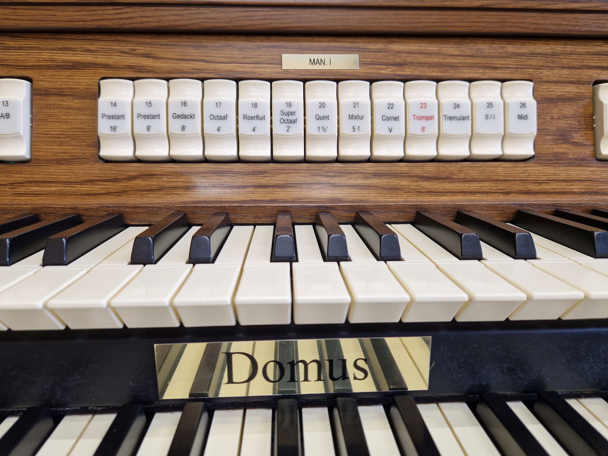 | Koppel II-pedaal | Trompet 8′ | Hobo 8′ |