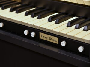 Deze Domus Vivace 30 occasion, uitgevoerd in de kleur zwart, is een compact studieorgel met een 27 tonig inschuifbaar pedaal.