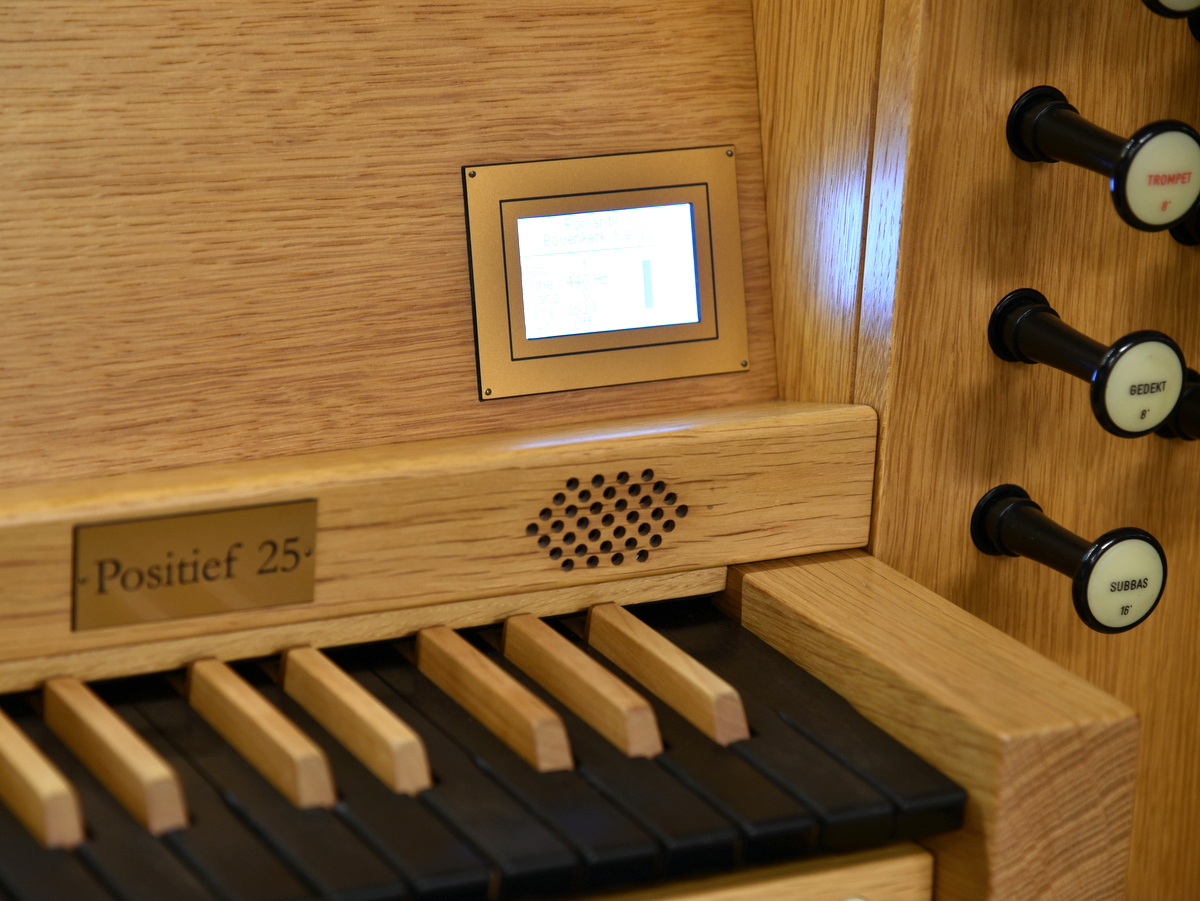 De Positief 25 telt 41 stemmen, te bedienen met verlichte trek/druk registers. Met dit instrument heeft u vier verschillende orgels ter beschikking.