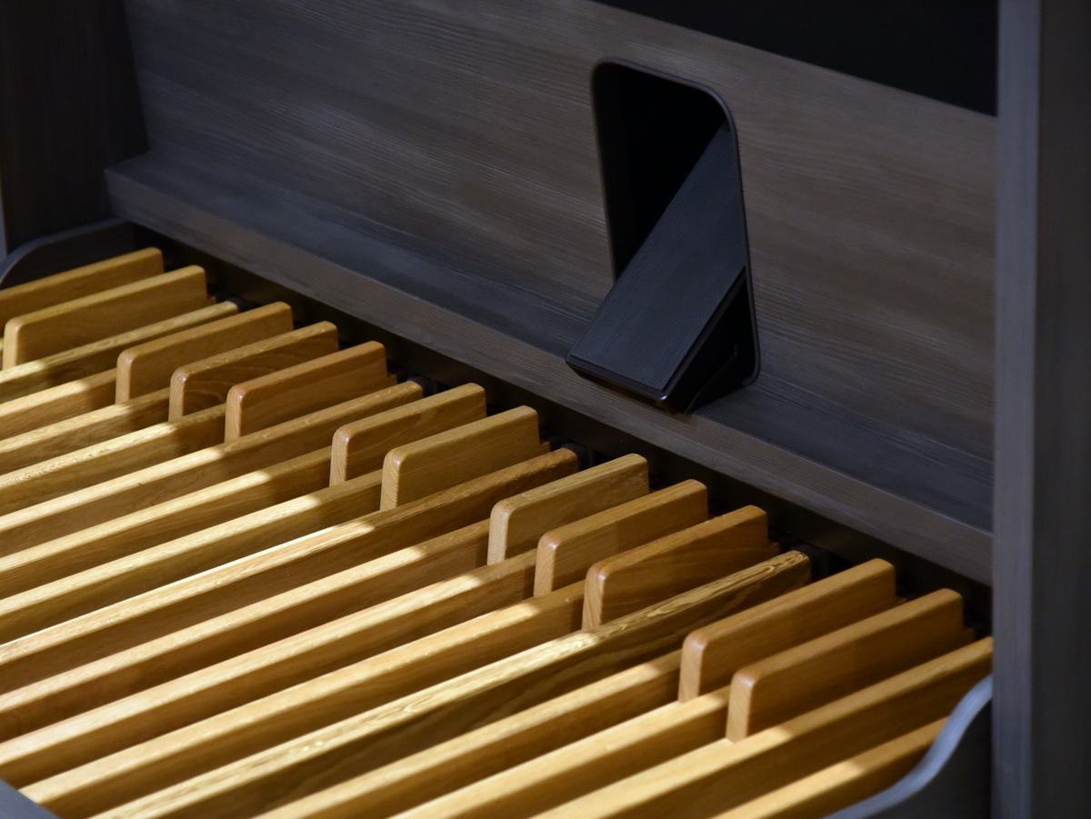 Dit instrument beschikt over 12 verschillende nagalmprogramma’s en maar liefst 4 verschillende orgelstijlen. Waan jezelf in een kerk of kathedraal met het hoge meubel en de verlichte trekregisters terwijl u in werkelijkheid in uw eigen, vertrouwde huiskamer zit.